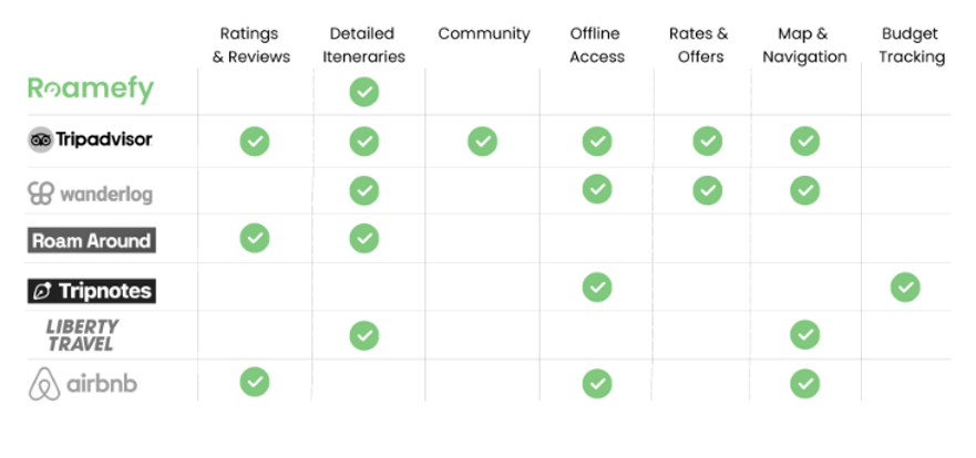 We also compared the features of sites used by our interviewed subjects when planning trips.